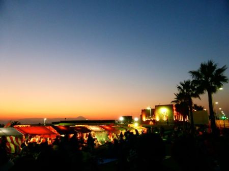 今日の1枚 夕焼けと富士山 picolittle 2014年10月18日 冷たい夜の風と屋台のいい匂い。遠くには夕焼けと富士山。 今日は秋の花火大会でした。 We went to see the fireworks of autumn today.